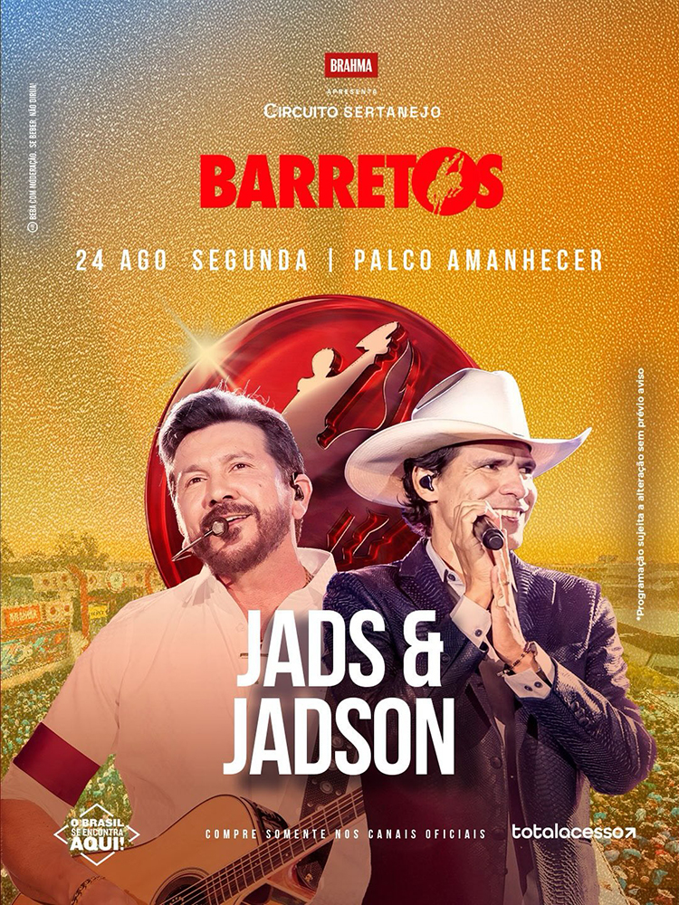 Na segunda-feira, dia 24 de agosto, o Palco Amanhecer recebe a dupla Jads & Jadson, conhecida pelo sertanejo de identidade forte e repertório que mistura romantismo e batidas contemporâneas. Na sequência, Felipe & Rodrigo sobem ao palco com sucessos recentes e um repertório que vem conquistando o público em todo o país. Fechando a noite, o grupo Turma do Pagode leva ao público todo o clima descontraído e envolvente do samba e pagode, garantindo animação até o amanhecer.