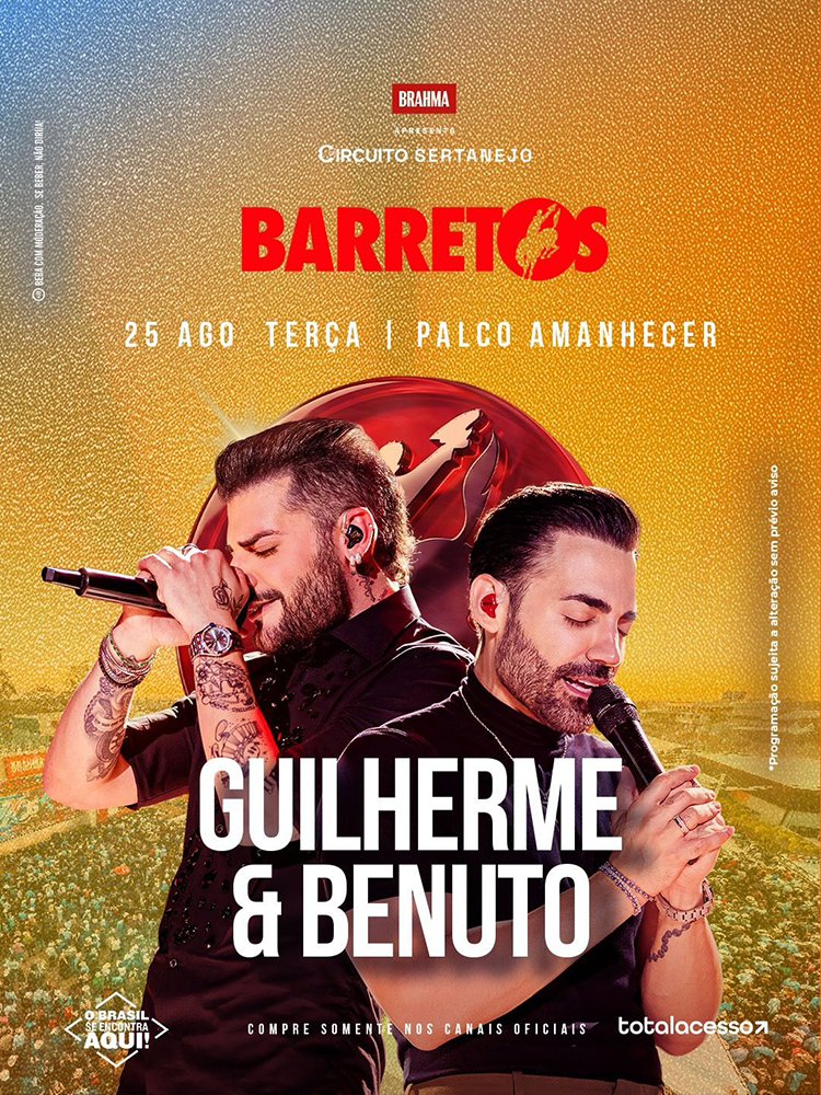 Já na terça-feira, 25 de agosto, data em que Barretos celebra seu aniversário, a programação ganha um tom ainda mais especial. O Palco Amanhecer recebe, em show conjunto, o Trio Parada Dura e a dupla Lourenço & Lourival, ícones da música sertaneja raiz com décadas de história. Também se apresentam Guilherme & Benuto, uma das duplas de destaque da nova geração, com hits que dominam as plataformas digitais, além do grupo Pixote, referência no pagode romântico, que promete embalar o público com grandes sucessos.